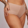 Calcinha cintura alta, fio duplo e laterais largas.