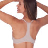 Sutiã modelo nadador com bojo e aro, fecho frontal e alças no estilo regata.