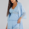 O combo une conforto, sofisticação e sensualidade em cada detalhe. Ele traz o baby doll em renda lese e microfibra comfort, que valoriza o colo com delicadeza e oferece ajuste perfeito com alças reguláveis, acompanhado de short com fendas laterais em renda. Para completar, o robe em microfibra com mangas em renda lese adiciona elegância ao visual, com toque macio, caimento impecável e zero transparência.
